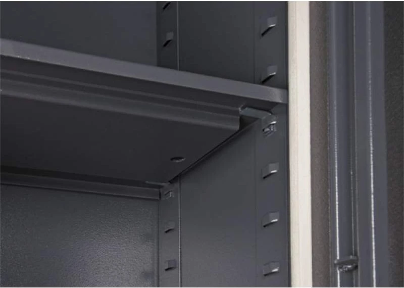 - Защитные свойства сейфа обусловлены структурой типа «сэндвич»: между двумя слоями стали (корпус) и тремя слоями (дверь) помещён патентованный наполнитель на основе пенобетона, обладающий повышенной устойчивостью к температуре горения и режущим инструментам.