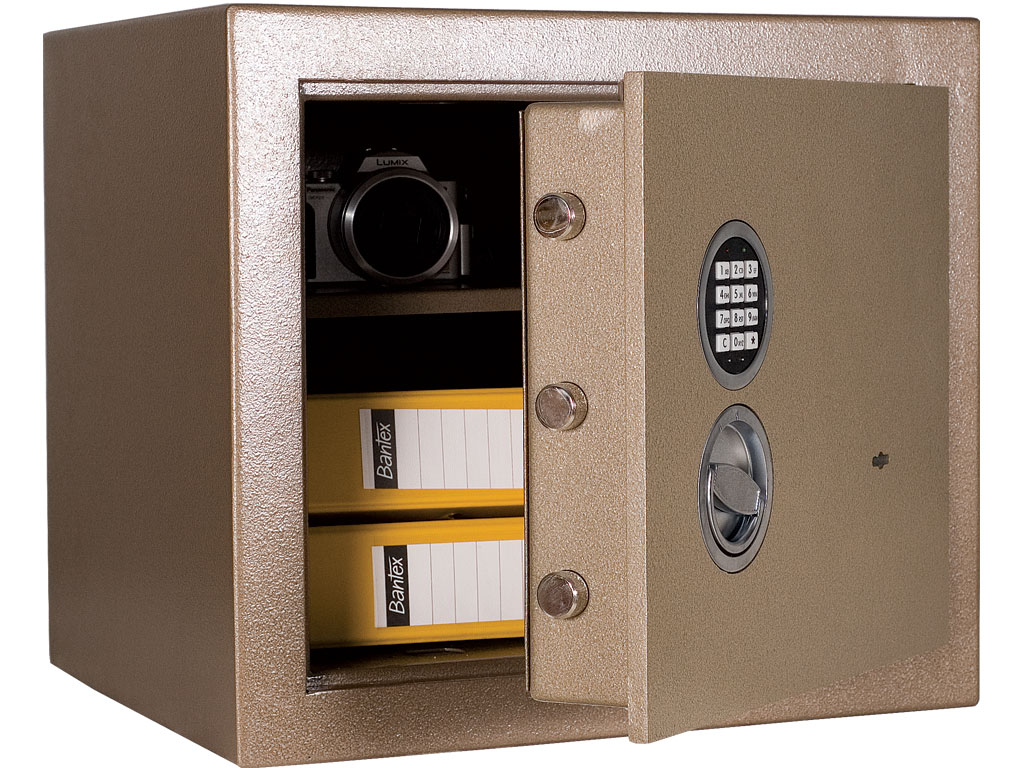 - На сейф нанесено порошковое износоустойчивое покрытие коричневого цвета;
